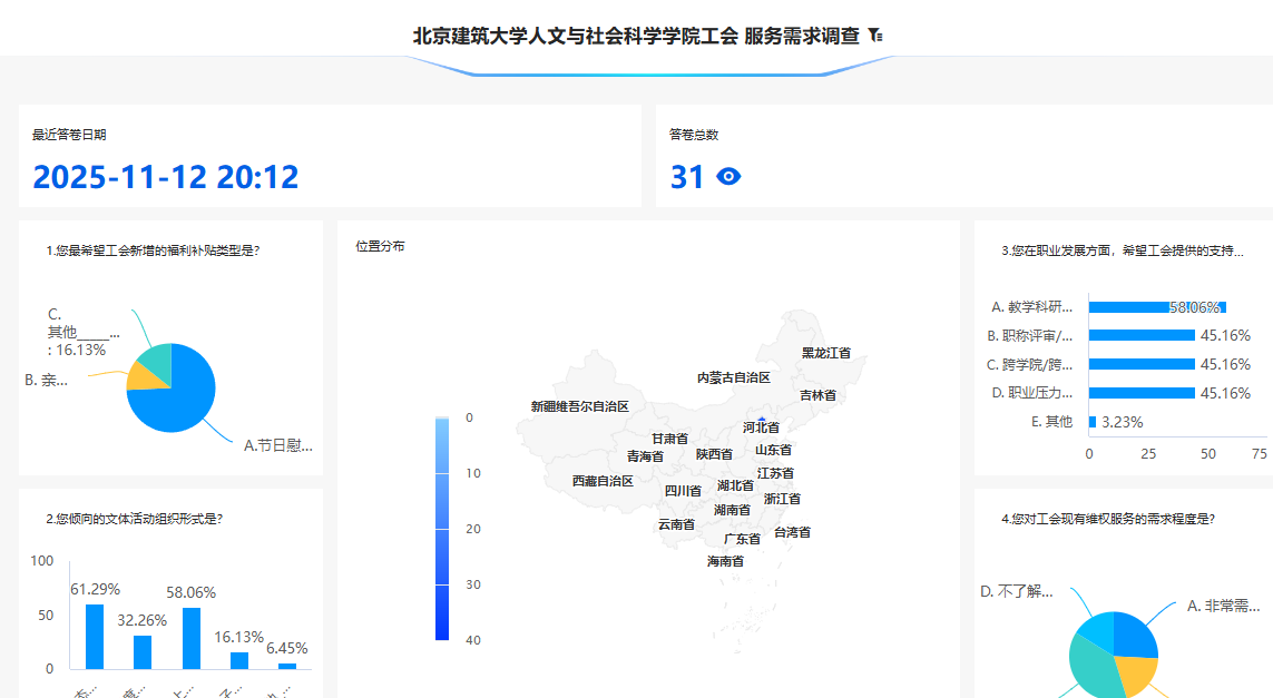 此次调研结果将为后续优化工会工作提供重要依据,未来工会将根据教职工反馈,精准对接需求,拓展服务内容,创新活动形式,努力构建更具温度与效能的教职工服务体系,持续增强四川麻将在线 凝聚力和教职工归属感。