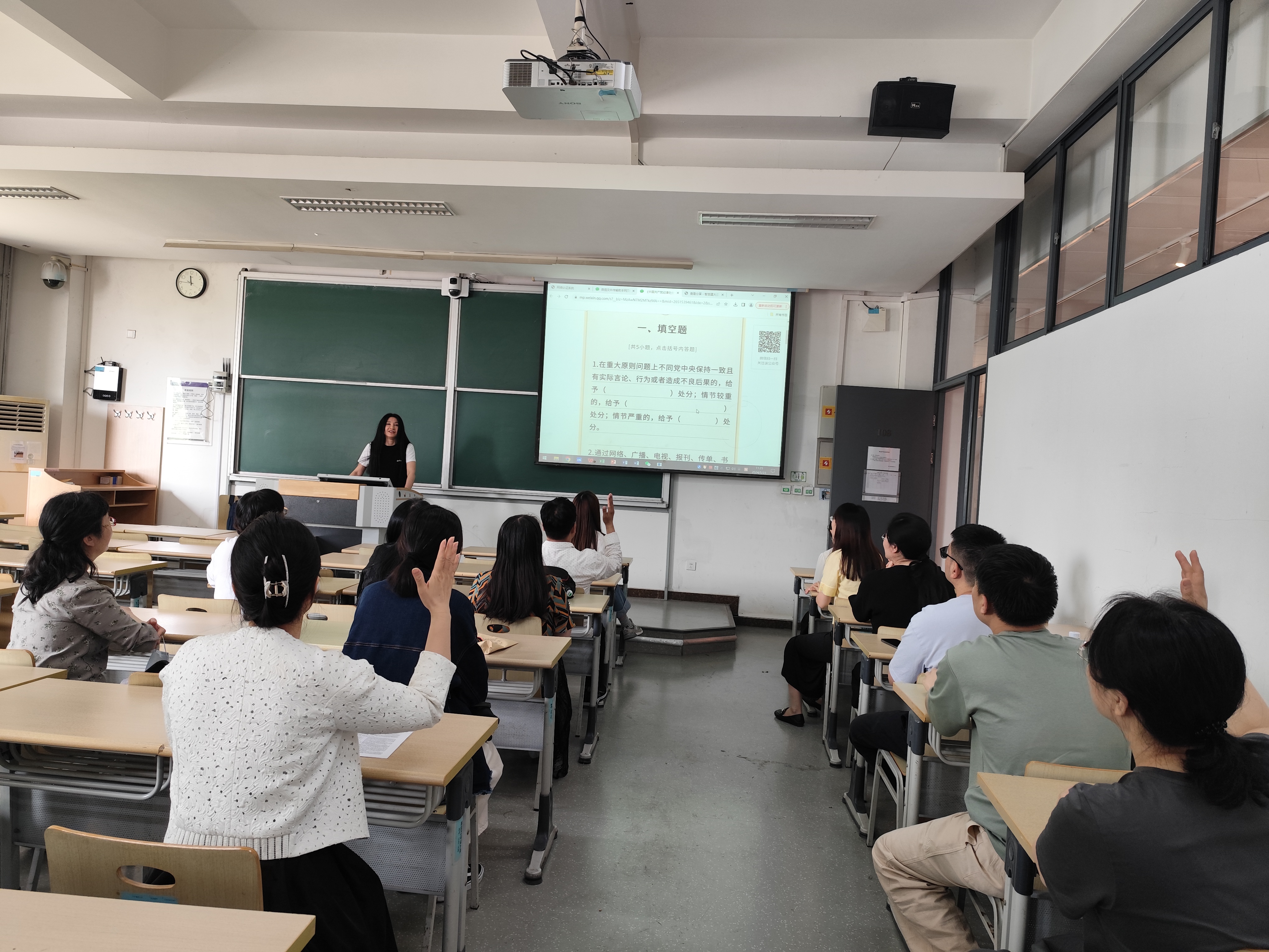 5月28日,文发院/人文四川麻将在线 外语部党支部以学习《中国共产党纪律处分条例》为主题,举行党纪学习教育知识竞赛活动。支部党员认真学习了《条例》内容,分小组进行了讨论和问答,竞赛题目包括填空题、选择题等,分为自由问答、抢答两个环节。通过知识竞赛活动,支部党员对《条例》内容再一次高质量进行了补充学习和理解。现场气氛活跃,增强了学习兴趣,提高了认知,加深了理解。