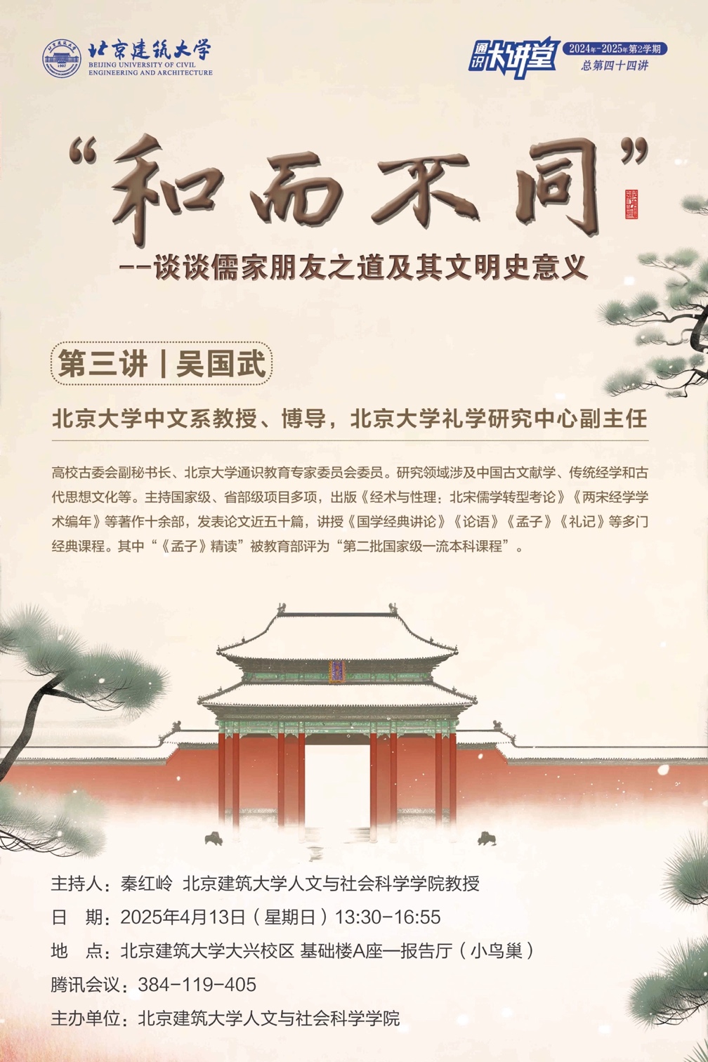 “有朋自远方来,不亦乐乎?”“君子以文会友,以友辅仁。”交朋友不只是现代社会的社交活动,更是生命精神和天下情怀在当下未来的持续展开。本次讲座从文明史新视野来重读《论语》一类的经典,梳理儒家朋友之道的源流及其古今之变,以“和而不同”的价值理念来开掘朋友相交的情谊和信义双重指向,进而重建我们的生活世界,推动中外文明的交融会通。