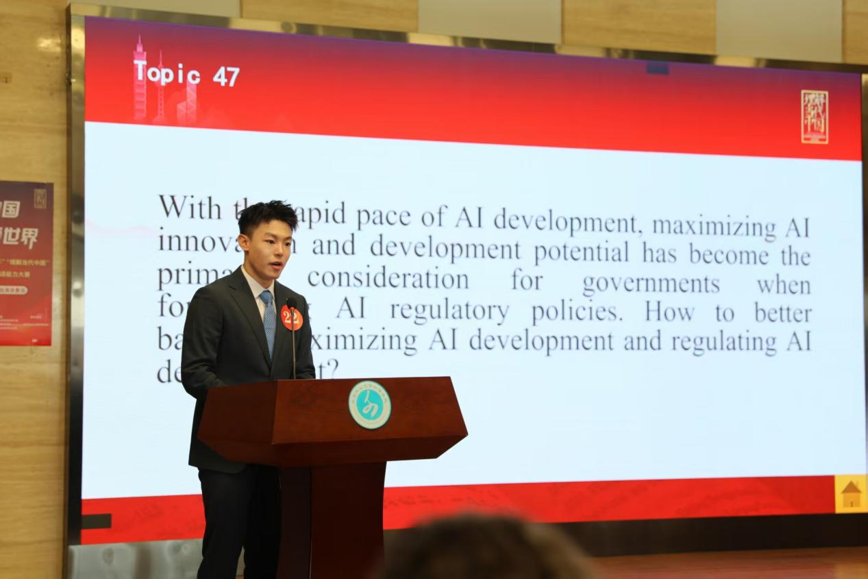 本届大赛以“理解当代中国”为主题,旨在引领学生讲好中国故事,践行“理解中国,沟通世界”的使命。决赛由定题演讲“Strike the Waves”(击水中流,破浪前行)、即兴演讲及现场问答三部分组成。