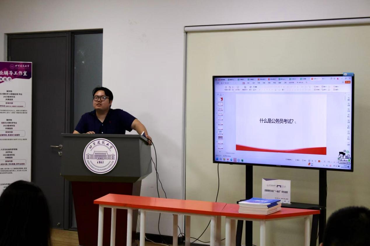 讲座伊始,单鑫琳以“公务员考试的本质与职业价值”为切入点,结合行业发展趋势,深入浅出地解析了公务员考试的基本属性、职业发展路径及待遇保障体系,帮助同学们建立对公职岗位的全面认知。