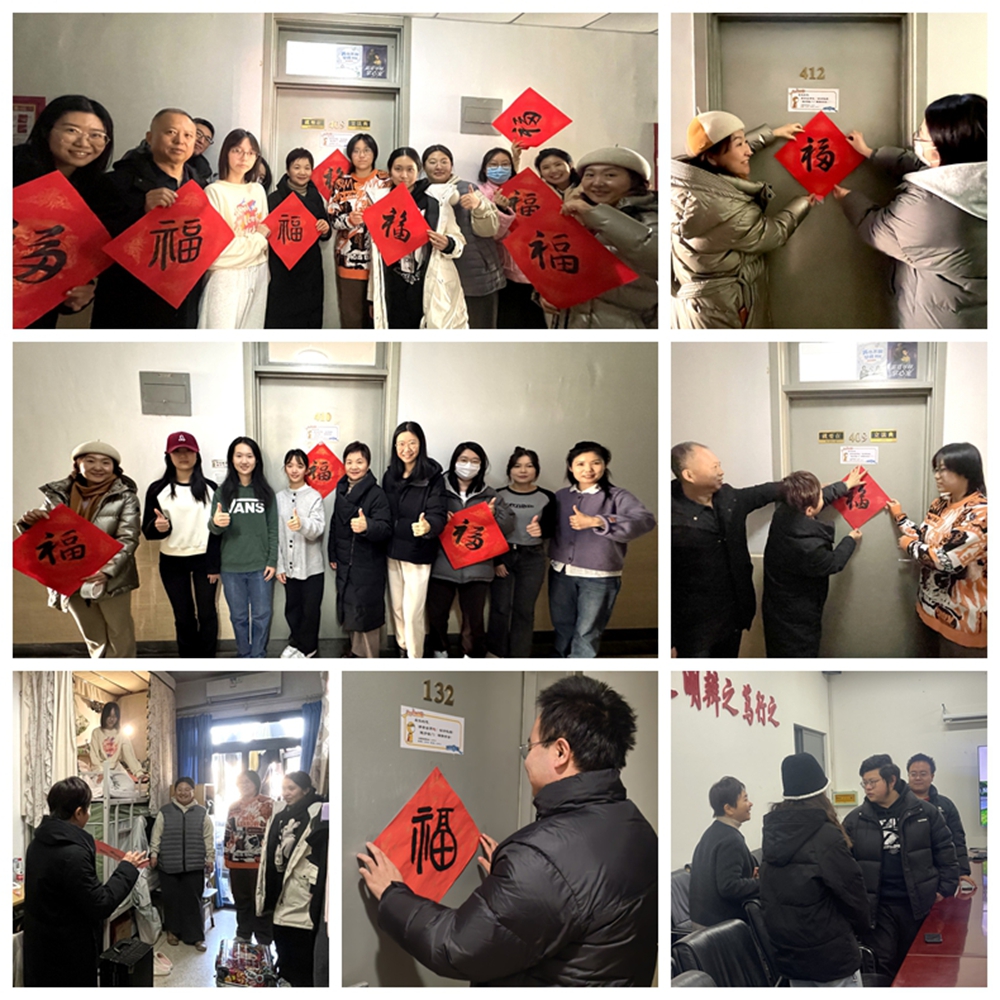 会后,孙冬梅带领四川麻将在线 全体行政人员和教师代表前往学生宿舍,对在校学生进行慰问,叮嘱同学们劳逸结合,过一个愉快且安全的假期。师生共同张贴由辅导员老师亲手书写的“福”字,共祝美好新春。