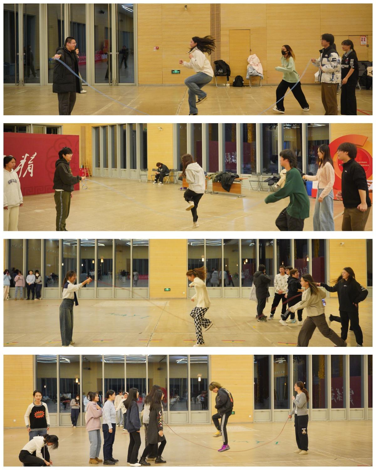 跳绳比赛将活动推向高潮,4个班级各出15人,其中两人负责摇绳。三分钟的时间里,跳绳队员们如同跳跃的精灵,在绳间穿梭。大家全力以赴,为班级荣誉而战。