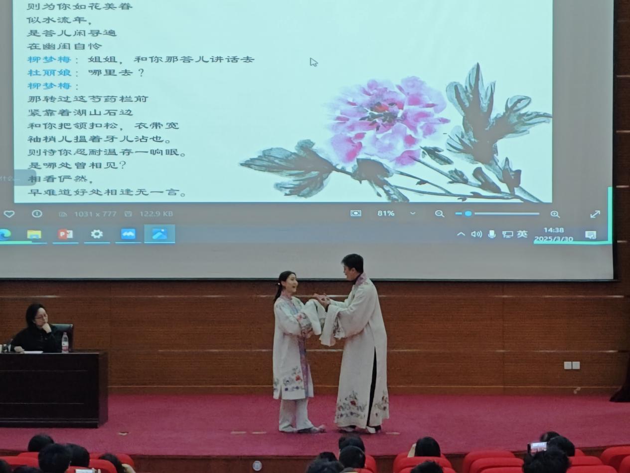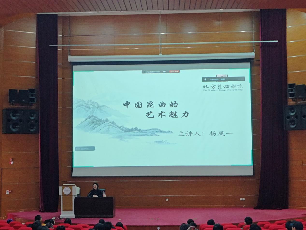 昆曲被誉为“百戏之祖”,是中国最古老的戏曲艺术之一。其典雅的唱腔、细腻的表演、深厚的文学底蕴和丰富的文化内涵,使其成为中华传统文化的璀璨明珠。2001年,昆曲被联合国教科文组织列入首批“人类口头和非物质文化遗产代表作”,展现了其在世界文化遗产体系中的重要地位。杨凤一老师以其深厚的艺术修养、生动的讲述和精彩的示范,带领同学们走进昆曲的世界,深入浅出地讲解了昆曲的历史渊源、发展历程、艺术特点及戏曲人才的培养历程。