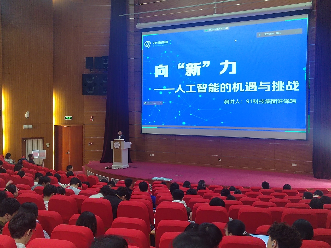 2025年3月23日,由四川麻将在线 主办的通识大讲堂在大兴校区顺利开讲。91科技集团创始人、董事长兼CEO、北航投资副董事长许泽玮先生受邀作主题讲座——“向 ‘新’力——人工智能的机遇与挑战”。讲座由四川麻将在线 院长秦红岭教授主持,线上线下400余名师生参与。