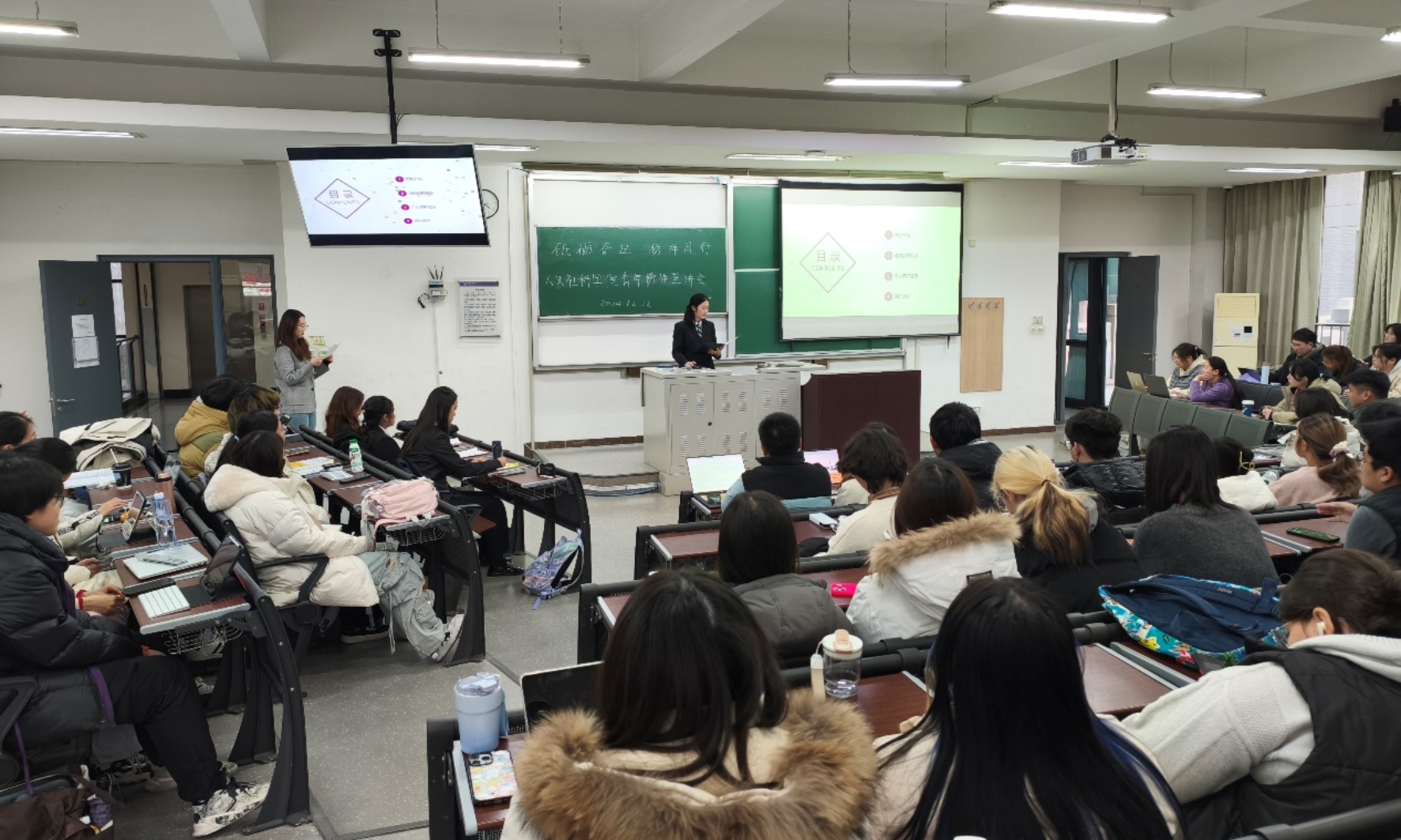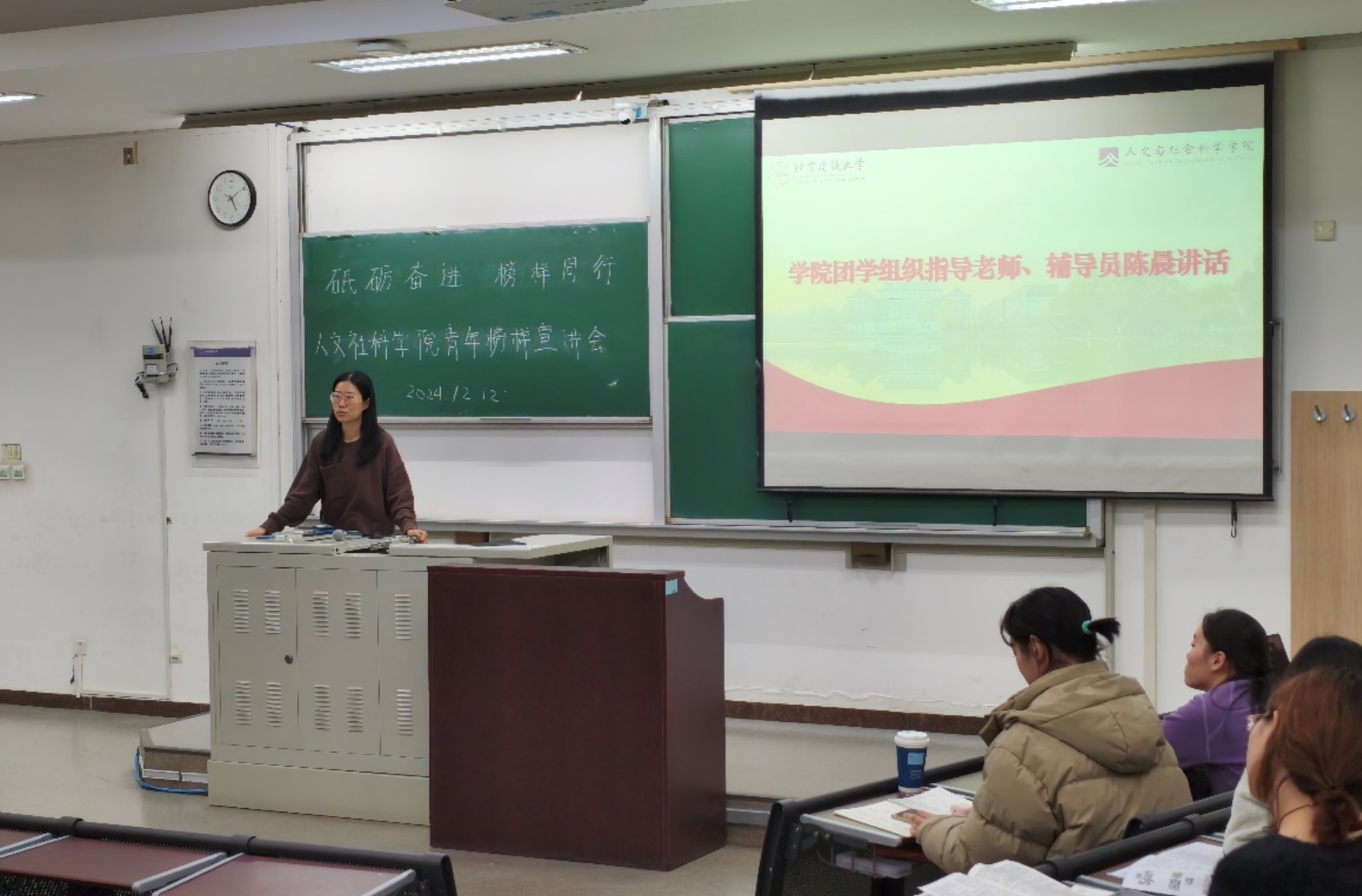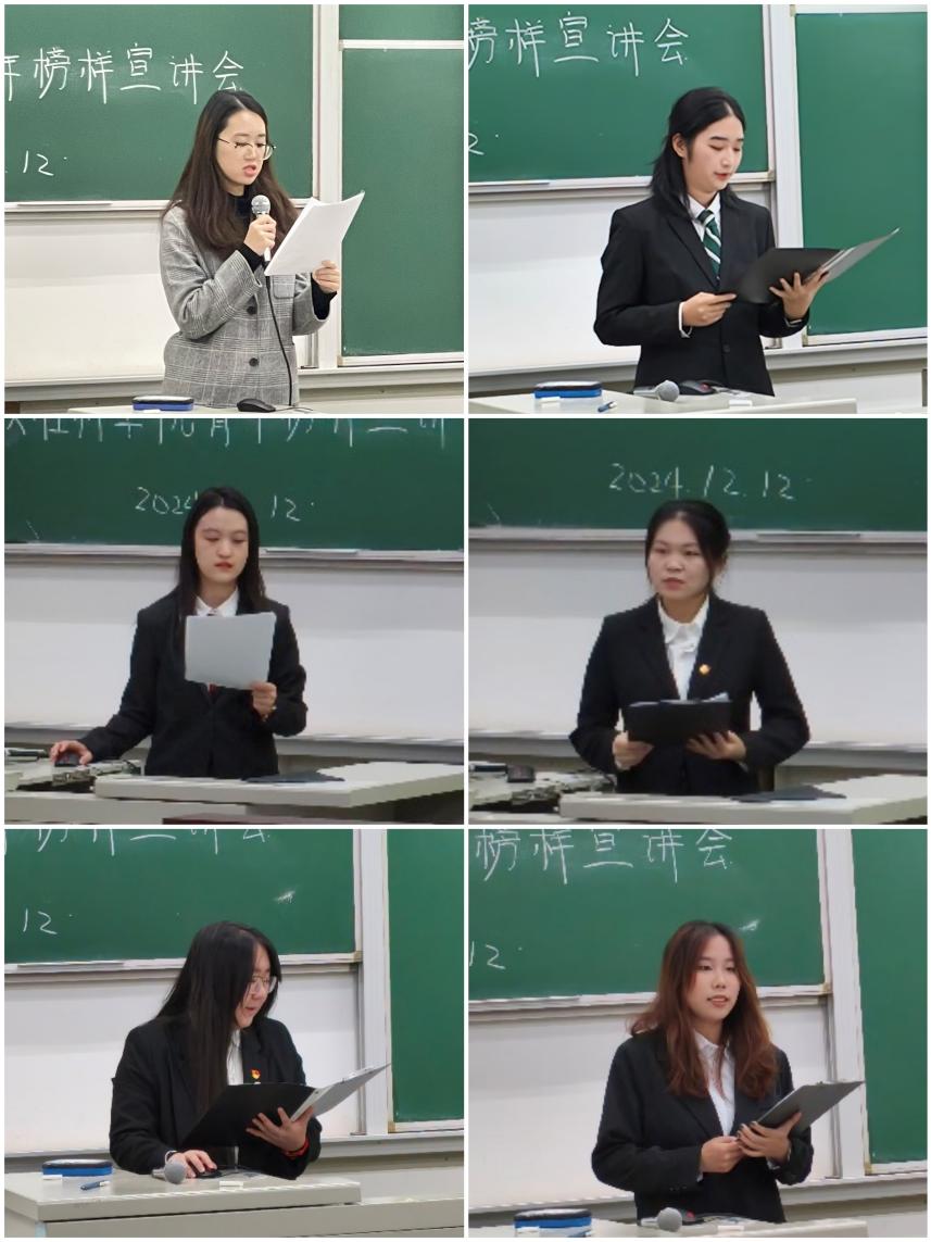 榜样引领成长,初心烛照未来。为帮助新生树立学习目标,增强学习动力,四川麻将在线 于12月12日在基D220举办“砥砺奋进,榜样同行”青年榜样宣讲会。辅导员陈晨、优秀学生代表,以及全体2024级本科生参加大会。会议由社242班谢思妤主持。