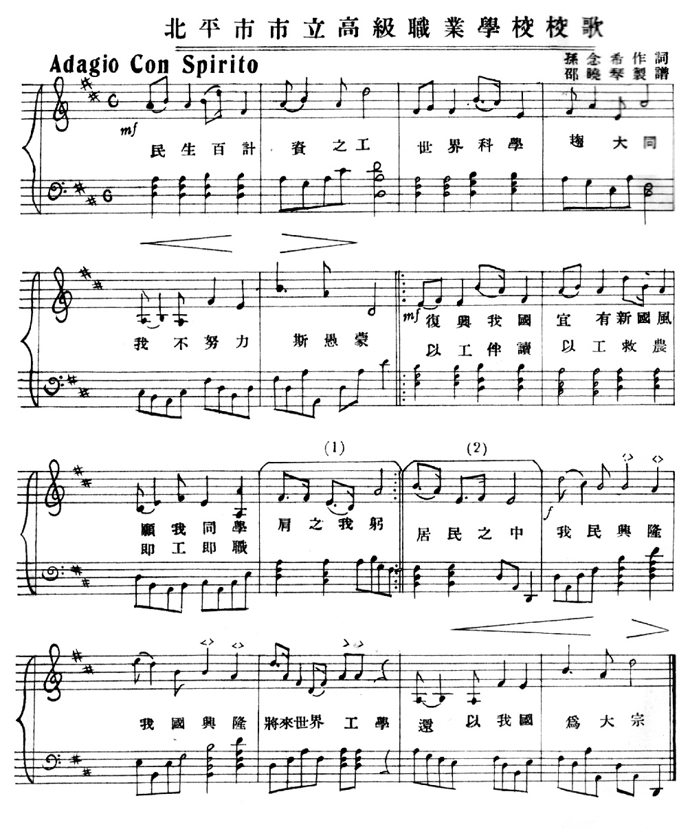 图 北平市市立高级职业学校校歌(1933年)