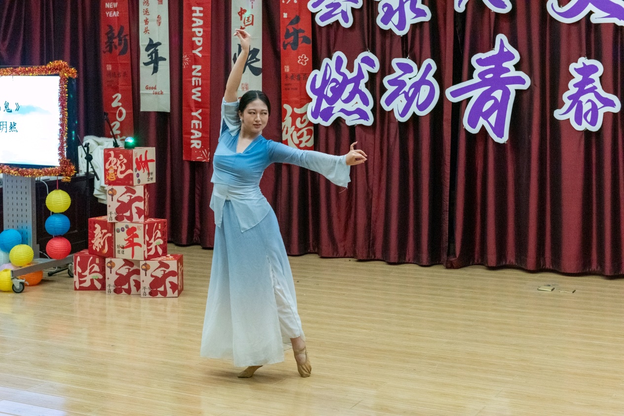 王新萌以其热情奔放的舞姿为我们带来拉丁舞《Katchi》,正式拉开了节目表演的序幕,每一个舞步都充满了活力,瞬间点燃了现场的气氛。唐瑞凝的一首《天空之外》传递出对未来的憧憬和对梦想的执着,仿佛将老师和同学们带入了一个充满奇幻与美好的世界。