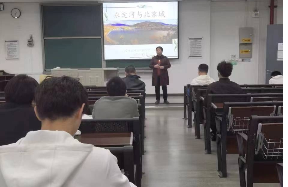 侯老师从永定河的基本情况、历代防洪治水、新中国永定河的开发利用、永定河绿色生态走廊建设以及永定河文化等方面进行讲授,向与会师生系统介绍了“永定河的起源、沿岸的水利设施、流域内的地形地貌、非遗文化”以及未来展望等内容,提出了人类对永定河开发利用的三步曲:一是古代敬畏自然力量——敕封永定河神,引水灌溉,防洪筑堤,疏浚河道;二是当代人定胜天的思维——修建多种水利工程,改造永定河;三是现代人水和谐的理念——进行生态治理涵养,保护永定河水生态环境。