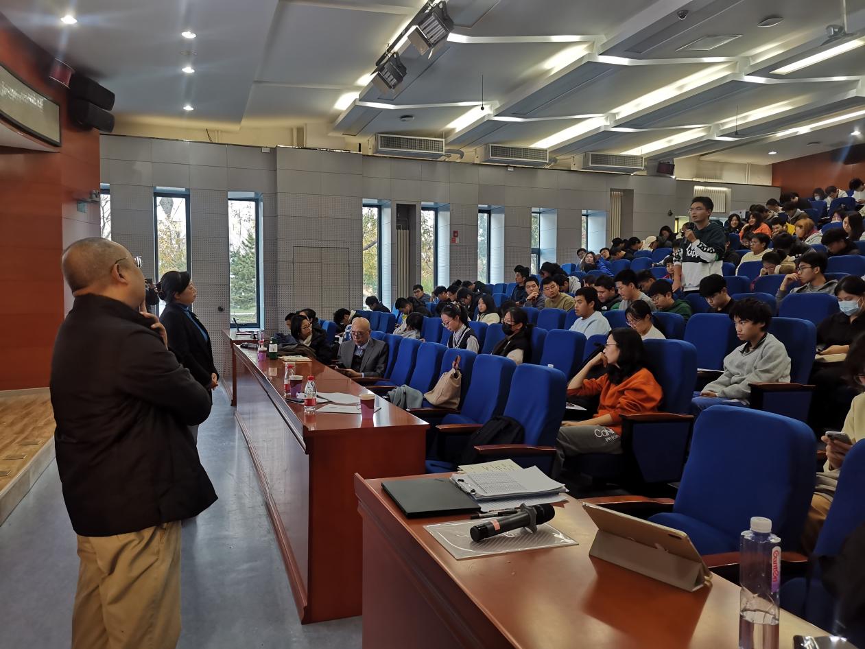 在讲座最后,王军老师回答了学生关于方圆转化、时空对应方面的提问,与学生交流互动。