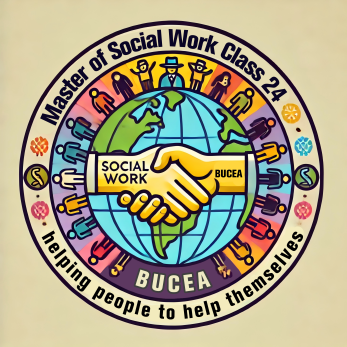 班徽设计解读:班徽背景融入地球平面图形,契合2024年国际社会工作日的主题,上部文字镌刻“社研24“的英文简称,下部文字则为社会工作专业核心理念“助人自助”的英文完整表述。班徽中的握手图案,既象征着社会工作专业与北京建筑大学的相遇、相知、相成,也象征着社会工作者与服务对象在专业服务中的共同合作和成长,而该图案贯穿整个背景地球,彰显着我们对全世界社会工作专业交流互鉴、携手进步的愿望与畅想,此外,21个风格迥异的卡通形象散布地球之上,则代表着社会工作专业对服务对象的“尊重”与“非评判”等专业价值观。班徽设计呼吁同学们践行社会工作专业价值理念,为推动我国社会工作专业本土化发展贡献己力。