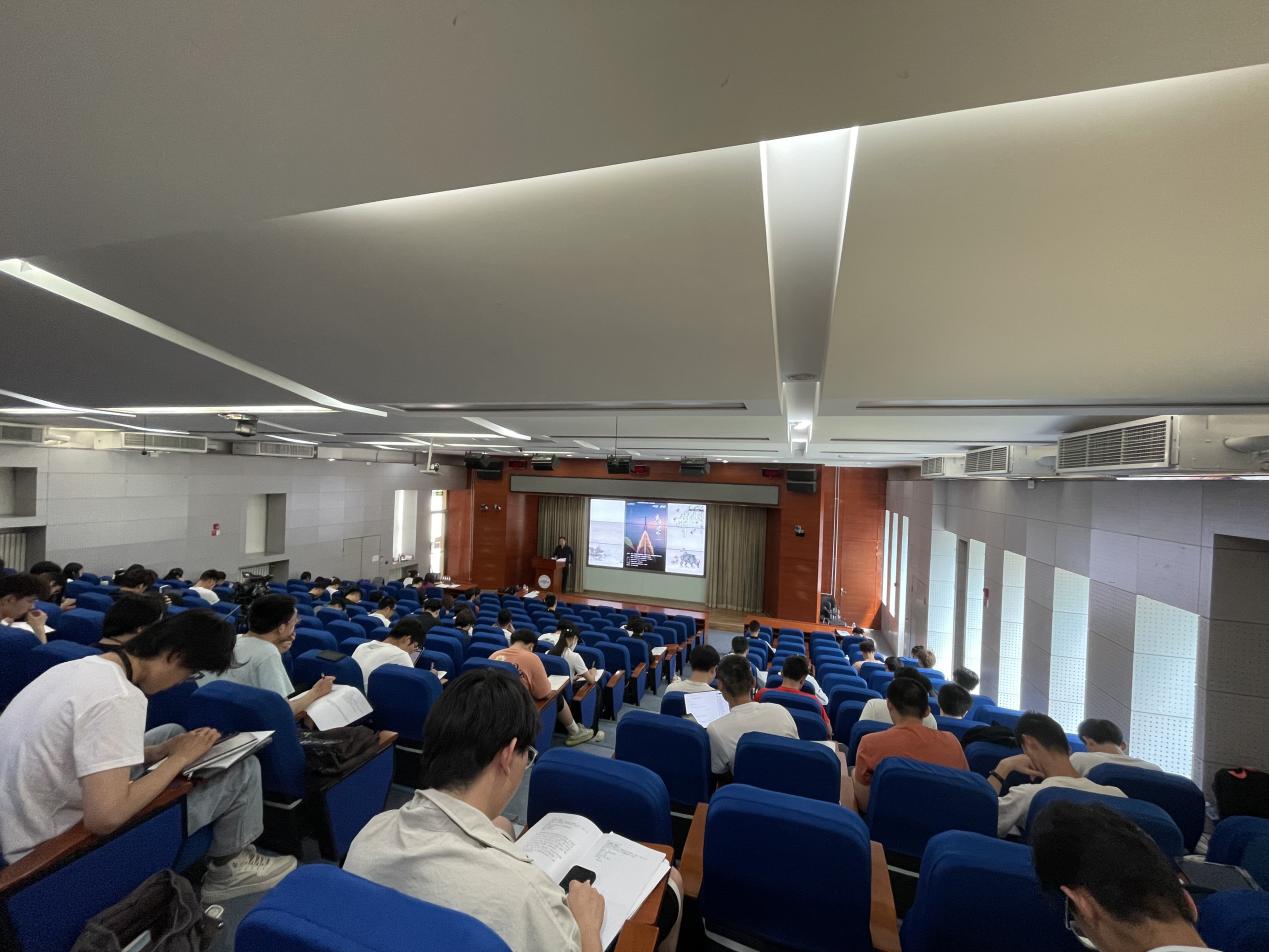 常平教授认为,建筑和音乐一样需要精心设计整体结构与挑选合适材料。音乐编曲所涉及的平衡、动力、布局、风格以及时代和民族特色等概念,与建筑有着异曲同工之处。随后他从西方音乐史切入,向与会听众讲述了巴洛克主义、古典主义、浪漫主义、新古典主义以及现代主义等音乐流派的发展进程,并向学生分享自己创作交响乐的感受,从而引申出音乐教育的重要性。常平教授指出,走进音乐艺术的大门,可以为我们打开一个新的世界,好的音乐会荡涤人的灵魂,在高校通识教育中,音乐教育尤为重要。同时,音乐家要关注人类命运,关注科技发展与人类生活的关系。