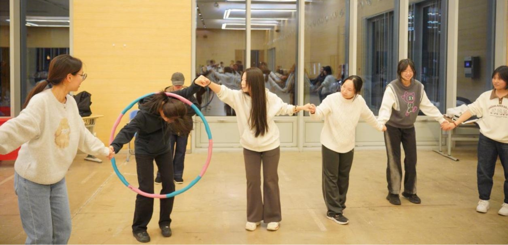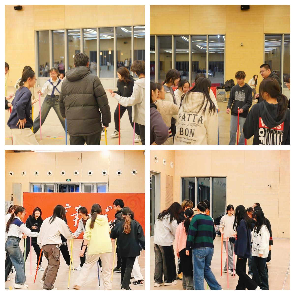 紧接着是“不倒森林”比赛,每班10名同学参与其中。大家全神贯注,在保证自己手中棒不倒的同时,迅速移动步伐将右手掌心按到相邻同伴的棒上。每一次成功的换位都伴随着同学们的阵阵喝彩,而一旦有棒倒下,队伍便会迅速调整,重新开始。
