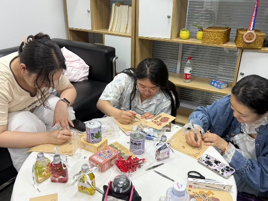 同学们领取花材、矿物油、花瓶等材料,在纸上设计构图后,将花材分层放入花瓶并注入矿物油。最后,将写有快乐或心愿的纸条装入胶囊放入花瓶,系上丝带完成装饰。通过这一过程,同学们不仅发挥创意,还把快乐和积极情绪永久保存,为未来留下美好回忆。